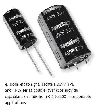 如前所述,大電容值的超級電容在物理尺寸方面不再是一個障礙。5F以上的超級電容已經開始應用于許多便攜式和手持式產品。在一些案例中,這些元件甚至可以代替給這些產品供電的電池。