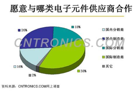 在過去的2008年中,有接近56%的回復者在選擇供應商時,更希望與國際電子元器件制造商和分銷商成為合作伙伴,先進的技術和成熟的管理經營機制及良好的公司信譽是整機廠商選擇國際型公司的理由。[page]