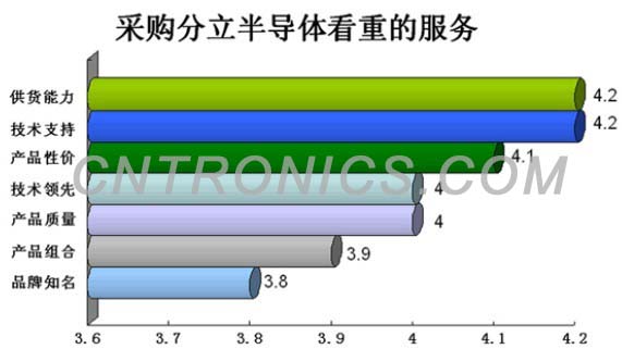- 同有源器件相比,分銷商忽視了無源元件和分立半導體的服務重要性,在技術支持和后續服務上不能滿足整機廠商的需求,使得滿意度進一步降低。