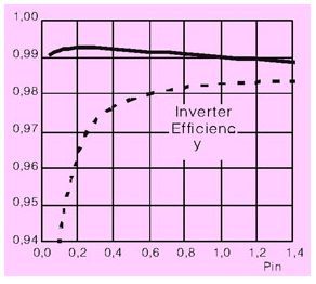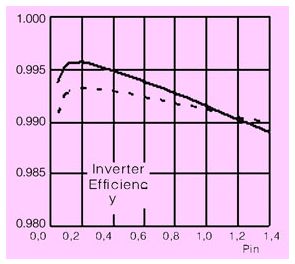 圖6 flowsol-bi逆變電路效率仿真結果-ee=99.2%標準igbt全橋-ee=97.2% (虛線)