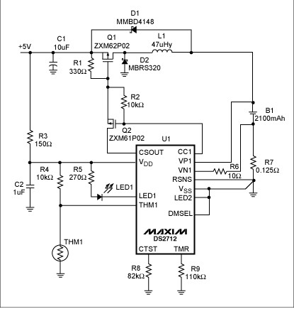 圖3. 采用DS2712充電控制器對NiMH電池充電