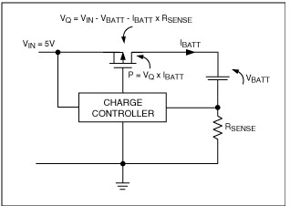 圖4. 功耗等于電池充電電流乘以調(diào)整管兩端的電壓