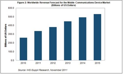 據(jù)IHS iSuppli公司的無線通信市場研究報告,智能手機和平板電腦在消費者中日益普及,今年將推動移動通信產(chǎn)品與無線基礎設施設備營業(yè)收入大增29%。