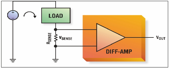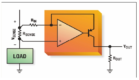 理想情況下,電流和電壓檢測都不應(yīng)影響所連接的負(fù)載。這意味著電壓檢測器件應(yīng)該具有近似無窮大的輸入阻抗,這樣才能確保對負(fù)載沒有明顯的分流。相反,電流檢測應(yīng)該具有近似為零的輸入阻抗,這樣才能確保加到負(fù)載上的電壓不會明顯降低。高端電流檢測電路(放大器+電阻器)應(yīng)滿足這兩項要求。用來檢測RSENSE上電壓的放大器必須具有高輸入阻抗,而用來檢測負(fù)載電流的電阻則必須非常小。