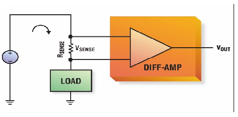 盡管一只電阻就可以將電流轉(zhuǎn)換成電壓,但電阻自身卻無法提供完整方案。最常用的方案是采用一只檢測電阻,將該電阻直接串聯(lián)在電流通道中,再用一個放大器來隔離并調(diào)節(jié)電阻上的電壓(VSENSE)。