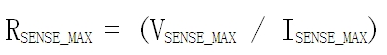 例如,如果通過檢測電阻的最大電流(ISENSE_MAX)預(yù)期為50mA,而高端電流檢測放大器所能接收的最大輸入電壓為250mV(VSENSE_MAX),則最大檢測電阻為5ohms (RSENSE_MAX)。