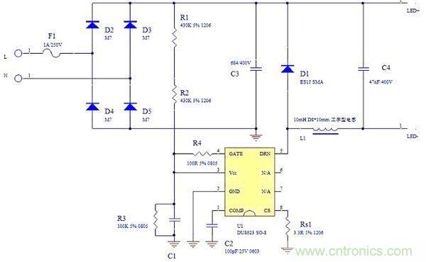 圖3:DU8623球泡燈應(yīng)用原理圖