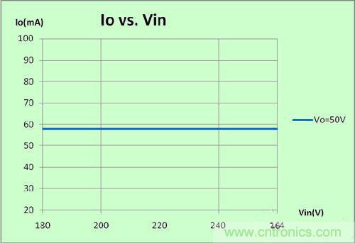 對(duì)于輸入電壓、負(fù)載LED變化情況下,我們測(cè)試得到如下交叉調(diào)整率結(jié)果: