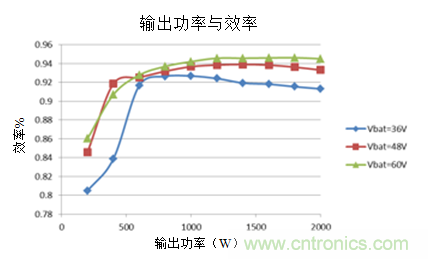 參考設計在降壓模式(作為充電器)下的峰值效率為94%,在升壓模式(放電期間)為95%,平均效率高于93%。這種高放電效率為電池提供更長的運行時間。在36V至60V的寬輸入電壓范圍內,使用電流饋電全橋級在放電模式下實現高效率,其優化隔離變壓器的設計,以繞組中的最小化均方根(RMS)電流,同時最小化通過輸入電容器的紋波電流。