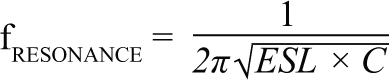 電容自諧振頻率就是電容電抗(1/ωC)等于ESL電抗(ωESL)時的頻率。對這一諧振頻率等式求解得到下式: