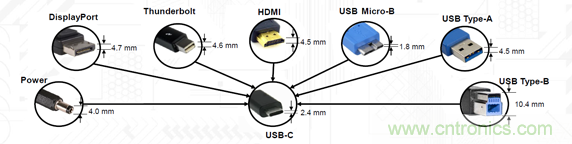 圖1:標(biāo)準(zhǔn)USB-C接口可以替代消費(fèi)類(lèi)設(shè)備中的多個(gè)其他接口