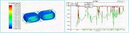 通過(guò)以上電場(chǎng)分布圖可以觀察到,單腔雙模,單腔三模可以自由選擇。在高次模出現(xiàn)的頻率點(diǎn)上,通過(guò)選擇介電常數(shù),與控制諧振腔尺寸,對(duì)高次模進(jìn)行優(yōu)化。盡量拉遠(yuǎn)高次模出現(xiàn)的頻率,減小對(duì)通帶的影響。