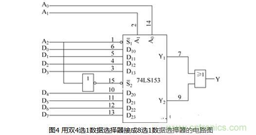 例1:用74LS153設(shè)計一個8選1的數(shù)據(jù)選擇器。