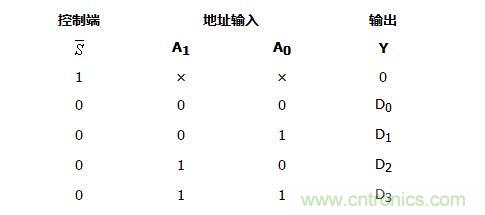 由表2可知,具有兩位地址輸入A0、A1的4選1數(shù)據(jù)選擇器,當使能控制端=0時,輸出與輸入之間的邏輯關(guān)系式為