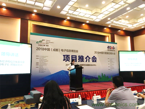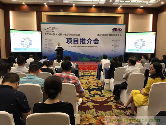 2018年5月24日下午, 2018中國(guó)(成都)電子信息博覽會(huì)暨2018中國(guó)大數(shù)據(jù)應(yīng)用大會(huì)在成都世紀(jì)城國(guó)際會(huì)議中心召開項(xiàng)目推介會(huì)。活動(dòng)由中電會(huì)展與信息傳播有限公司總經(jīng)理宋偉主持,四川省經(jīng)濟(jì)和信息化委員會(huì)電子處蘇平處長(zhǎng),成都市經(jīng)濟(jì)和信息化委員會(huì)通用電子處副處長(zhǎng)鄧敏出席推介會(huì)并致辭,中國(guó)電子器材總公司總經(jīng)理陳雯海向來賓介紹了2018中國(guó)(成都)電子信息博會(huì)項(xiàng)目整體情況和2018中國(guó)大數(shù)據(jù)應(yīng)用大會(huì)項(xiàng)目的相關(guān)進(jìn)展情況,四川省大數(shù)據(jù)產(chǎn)業(yè)聯(lián)合會(huì)常務(wù)副秘書長(zhǎng)朱小軍,代表合作伙伴在推介會(huì)上進(jìn)行了發(fā)言,四川省其他30家相關(guān)學(xué)協(xié)會(huì)等也參加了本次活動(dòng)。另外,現(xiàn)場(chǎng)還有超過50家媒體及100家成都及四川地區(qū)電子信息產(chǎn)業(yè)相關(guān)企業(yè)及組織出席項(xiàng)目推介會(huì)。