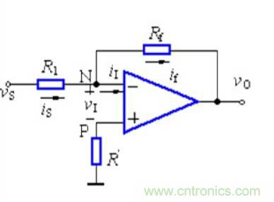 下面本文用虛斷和虛斷方法來對實際的電路進行分析,如圖1-1所示,是常見的反相比例運算放大電路: