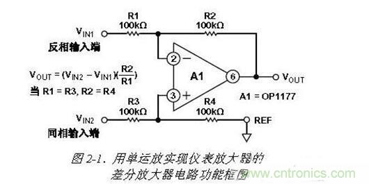 如果R1 = R3,R2 = R4,則VOUT = (VIN2—VIN1)(R2/R1)