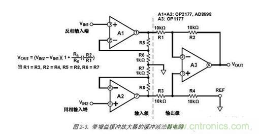 到這里,我們導出了這個經典電路的;來龍去脈: 差分放大器--》前置電壓跟隨器--》電壓跟隨器變為同相放大器--》三運放組成的儀用放大器。