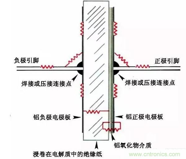 對于鋁質的電極極板材料和銅質的管腳材料來說,其電氣連接主要采用所謂的“焊接”和機械壓接方式。但是這兩種方式都會產生較高的ESR。