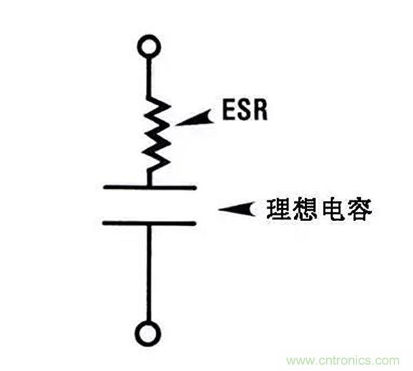 任何一個電容都會存在ESR,在電容電極之間始終都存在著一個電氣性的電阻,如金屬引腳電阻、電極極板電阻、以及它們之間的連接電阻等等。