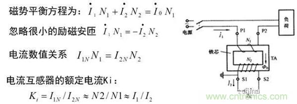 當一次側流過電流I1時,在鐵芯中產生交變磁通,此磁通穿過二次繞組,產生電動勢,在二次回路中產生電流I2。