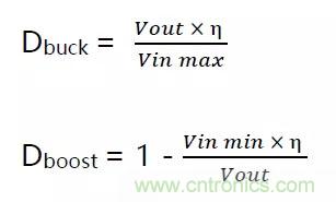 所以要計算降壓模式的最小占空比和升壓模式的最大占空比。這些占空比很重要,因為在這些占空比下,可以知道轉(zhuǎn)換器工作范圍的極限。占空比總是正數(shù)且小于1。