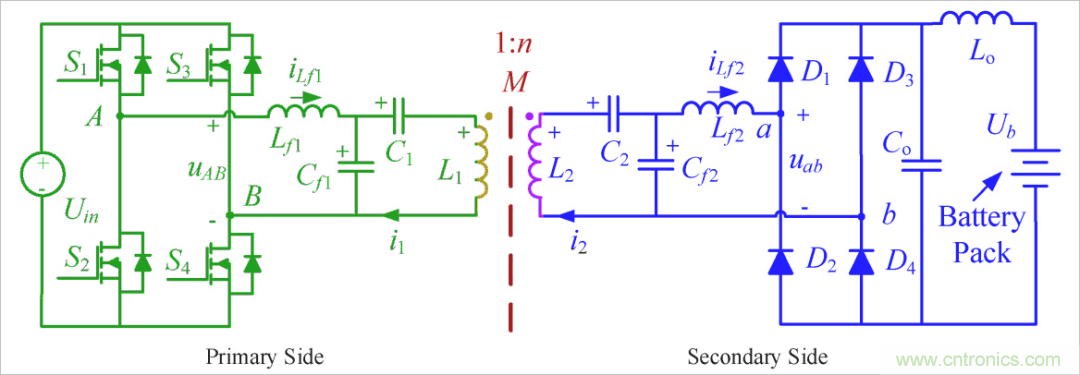 為了適應負載的波動,往往采用LCC電路補償形式。它可以在了負載變化的情況下,維持發(fā)送線圈中的電流恒定,從而提高了系統的穩(wěn)定性。