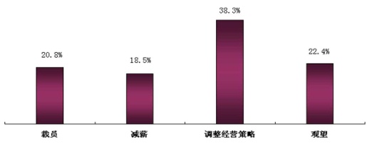 此項調查結果出乎我們的意料,選擇裁員的企業已經占到了20.8%,但是多數企業還是選擇了調整經營策略。我們特別希望有遠見的企業不要把裁員作為應對危機的主要措施,這也不符合我們“和諧社會”的主旋律。只要能正確的面對,認真分析企業的優勢,研究市場的動向,合理配置企業資源,充分發揮員工的潛力,調動員工的積極性,企業一定會有新的轉機。企業如能和員工共克時艱,就會加深員工對企業的感情,這種情感會轉化為企業的一種優勢資源。(見圖表四)