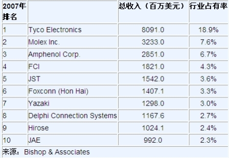 另外,北美將遇到最嚴重的收入下降,銷售額下降27.8%,達到67億美元,中國的連接器銷售額將碰到最好時期,收入將上升0.7%。