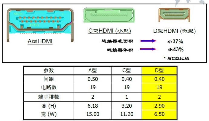 • TypeD(微型)連接器的尺寸C型HDMI連接器的一半