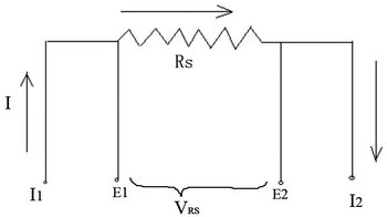 當(dāng)電流檢測電阻值已小到幾毫歐時(shí),其引線的電阻造成的誤差則不能忽略,為此開發(fā)出四引線結(jié)構(gòu),如圖4所示。接近電阻根部的兩引線為測量VRS端,另兩根引線為電流的通路。在電阻根部測量RS上的電壓(消除了引線電阻的測量誤差)是精密測量方法,也稱為凱爾文(Kelvin)測量法。