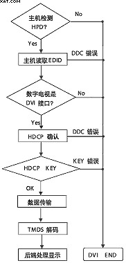 另外,從接收設備實際使用的角度看,HDCP的上述認證系統有一定的缺陷,使用中從DVI接口模式切換到其他接口模式,TMDS解碼處理器被PowerDown,HDCP識別將終止,中斷信號傳輸,意味著本次連接結束,然后顯示設備重新切換進入DVI接口模式,此時需要HDCP重新識別,則要求發送設備也要重新啟動,增加了使用的復雜性。