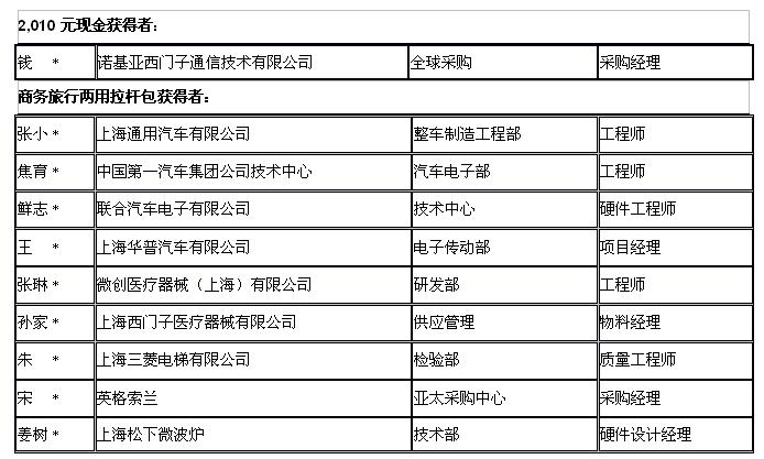 以下是第一批中獎名單,并已于12月底通過展會官方電子通訊向業界通知。