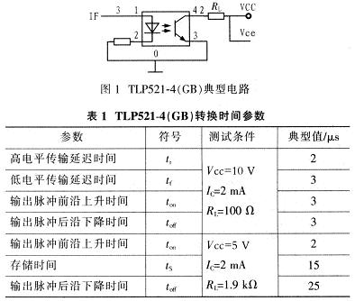 通常情況下,單芯片集成多路光耦的器件速度都比較慢,而速度快的器件大多都是單路的,大量的隔離器件需要占用很大布板面積,也使得設(shè)計的成本大大增加。在設(shè)計中,受電路板尺寸、傳輸速度、設(shè)計成本等因素限制,無法選用速度上非常占優(yōu)勢的單路光耦器件,在此選用TOSHIBA公司的TLP521-4。