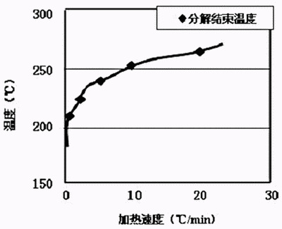 圖6有機外殼分解結束溫度與加熱溫度的關系
