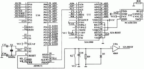 ECU(AT89C51)+CAN控制器(SJA1000)+CAN收發(fā)器(PCA82C250)的電路結構以下是其核心芯片簡介: