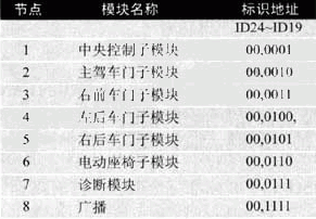 表2車身控制模塊各節(jié)點地址分配
