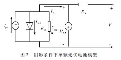 圖2中Iph為光生電流,IVD為流過二極管的電流,VD為Rsh的端電壓,Rsh和Rs為等效的并聯(lián)電阻和串聯(lián)電阻,V、Is分別為光伏電池元的輸出電壓和電流。根據(jù)此等效模型可得到光伏電池的數(shù)學(xué)模型,并根據(jù)數(shù)學(xué)模型得到光伏電池特性曲線,如下圖3所示。