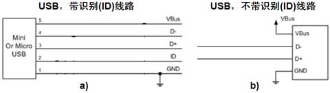 USB 2.0接口在便攜設(shè)備中的應(yīng)用范圍非常普及,在用戶的日常使用中也有著極高的使用頻率,故需要為高速的USB接口提供可靠的ESD保護(hù)。圖2顯示的是速度達(dá)480 Mbps的USB 2.0高速應(yīng)用在帶識(shí)別(ID)線路及不帶ID線路兩種情況下的簡(jiǎn)明結(jié)構(gòu)示意圖。[page]