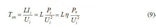 其中:Ui、Ii為輸入電壓和電流有效值。在一定輸入電壓和輸入功率時,Ton是常數。當輸出功率和電感一定時,導通時間Ton與輸入電壓Ui的平方成反比。