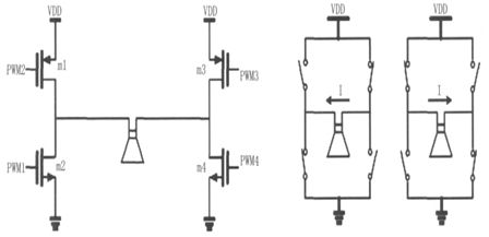 全橋開關電路工作在開關模式,隨著輸入信號的改變,m1~m4 的狀態隨之轉換,始終只有對角一對功率開關管導通,另一對截止。