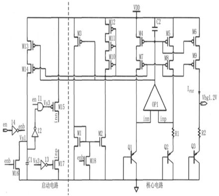 本文所設計的帶隙電壓基準源結構如圖10 所示,主要由核心電路與啟動電路兩部分組成。