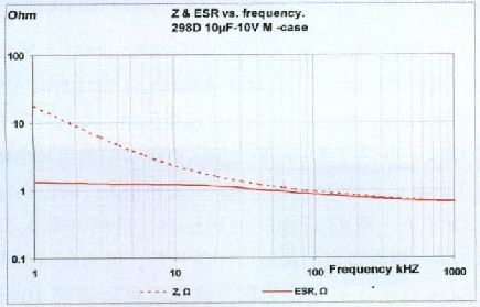 圖4顯示了威世TM8 -298D 系列M 或0603外殼尺寸的電容器。0603鉭電容在10kHz時的ESR為1.19 Ω,如圖3的鉭電容阻抗-頻率曲線所示。該ESR正處于安全工作范圍內,可實現出色的電路負載線穩定性。在本例中,如果采用具有10 mΩ以下超低ESR的MLCC電容,在電路中就需要給電容串聯一個小電阻,以便為ESR提供安全工作范圍。由于空間及組件數量有限,采用單個0603鉭電容就可以同時滿足ESR和空間要求。