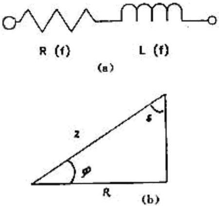 圖 4  鐵氧體抑制元件的等效電路 (a) 和阻抗矢量圖 (b)
