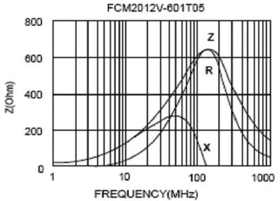 鐵氧體元件的等效阻抗 Z 是頻率的函數