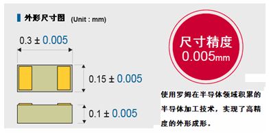 • 世界上最小的貼片尺寸0.3 mm×0.15 mm