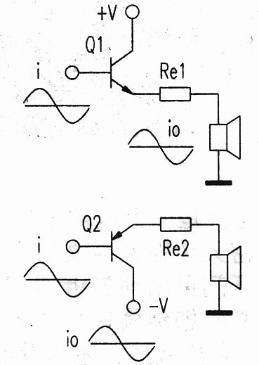 甲類功放多采用NPN與PNP配對的推挽式工作方式。推挽式甲類功放電路,可以看成是由2個單管式甲類射極器組成。