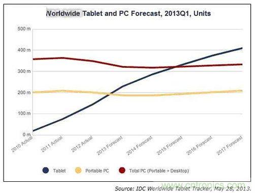 當(dāng)前消費(fèi)類電子產(chǎn)品的主要產(chǎn)品細(xì)分類型如下:配有3-5英寸屏幕的智能手機(jī);5-8英寸的超級手機(jī)或平板手機(jī);8-11.6英寸的平板電腦;11.6-15.6英寸的超極本;以及最大可達(dá)17英寸的筆記本電腦。在其5年的產(chǎn)品歷史中,平板電腦被認(rèn)為是升溫最快的移動(dòng)設(shè)備,根據(jù)預(yù)測,到2015年其銷量有望趕超個(gè)人電腦。因此,PC供應(yīng)商開始將重心轉(zhuǎn)移至用戶界面友好的觸摸設(shè)計(jì)上,比如具有與筆記本電腦或平板電腦相同功能的可翻轉(zhuǎn)筆記本電腦。
