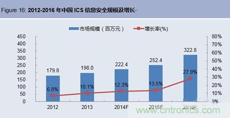 目前中國政府正在加速推進ICS等級保護標準的制訂,預計2016-2017年將有望在工控行業中全面實施,屆時將成為推動ICS信息安全市場發展的重要驅動因素, ICS信息安全市場將會呈現爆發式的增長。