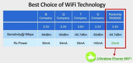 低功耗WiFi已成為IoT物聯網核心因素,瑞芯微Rockchip去年宣布推出全球最低功耗WiFi RKi6000,該技術使WiFi功耗與BT4.0 LE(Low Energy)藍牙低功耗相當??筛采w智能家居、主流家電、家庭控制中心,甚至醫療、交通、軍事等領域。該革命性低功耗WiFi方案引發了業界極大關注。